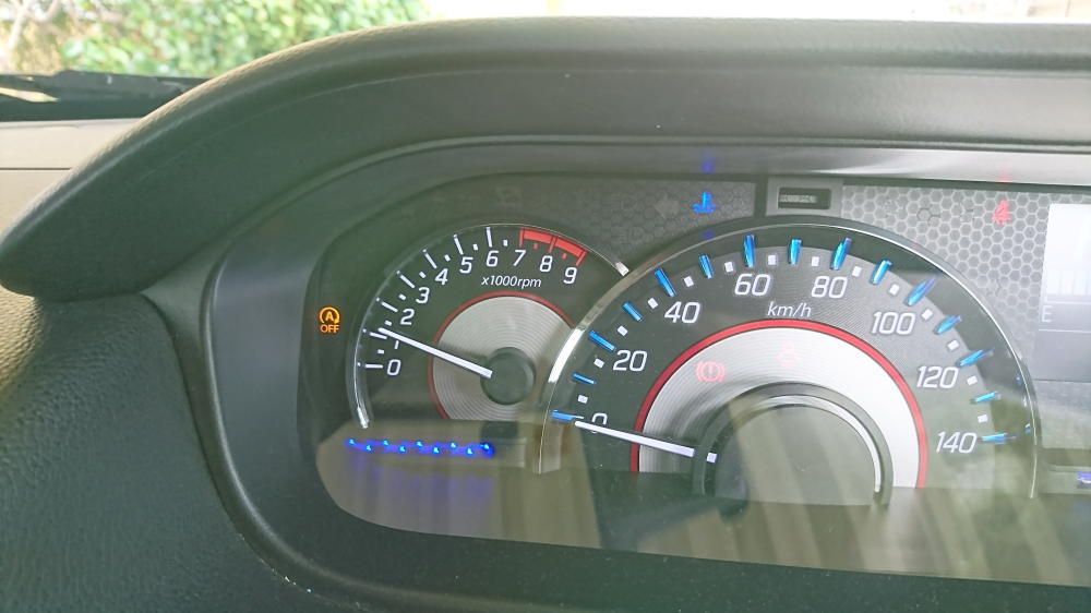 タコメーター左側にあるアイドリングストップキャンセル中を知らせるランプが点滅しているが、今のところ故障は感じられないので、無視している。これで3年おきの1万円以上の出費が抑えられると思えば安いものだ。