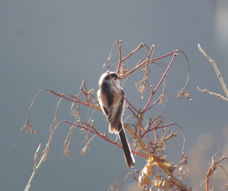 エナガ 小さな体に長い尾をもつ小鳥。九州以北の林などで一年中見られます。体長は14㎝位です。