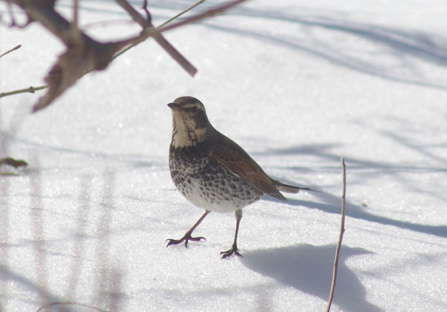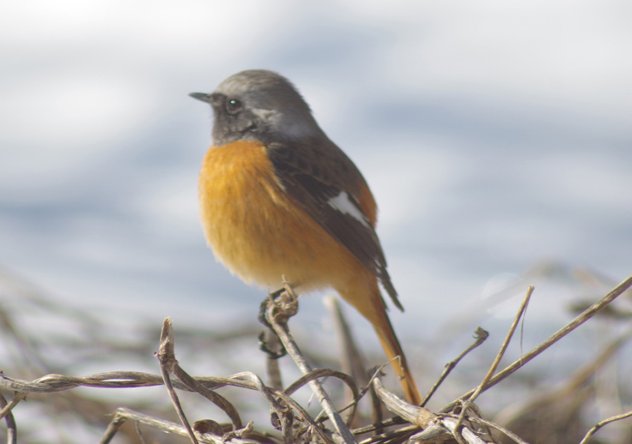 ジョウビタキ 雄の胸のオレンジ色が美しい冬鳥です。警戒心も薄く、ウッドデッキなどに来ます。