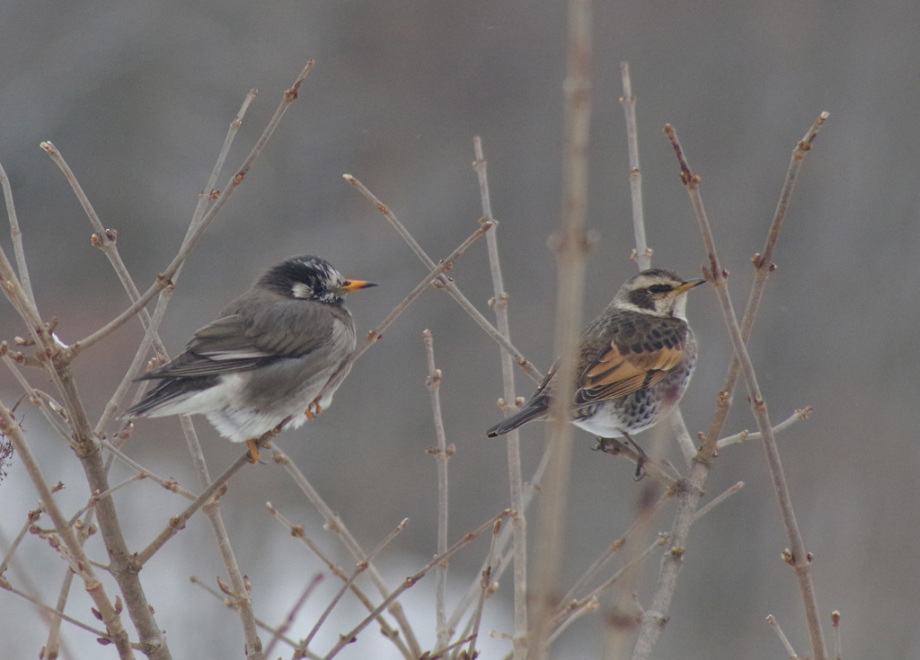 モズ 漢字では百舌と書きます。色々な鳥の鳴き真似をするので「百舌」の名がある。食性は動物食で、