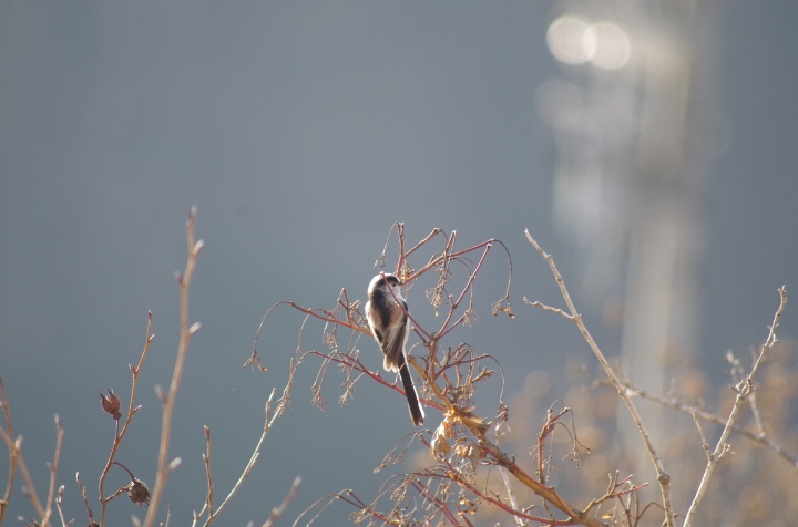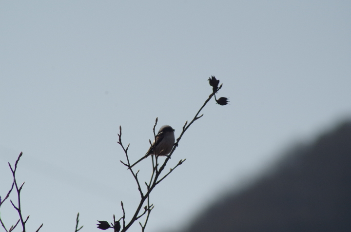 エナガ 小さな体に長い尾をもつ小鳥。九州以北の林などで一年中見られます。体長は14p位です。