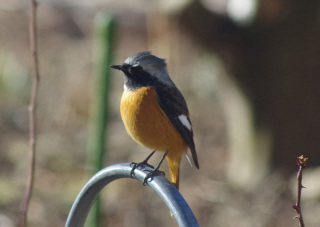 ジョウビタキ 雄の胸のオレンジ色が美しい冬鳥です。警戒心も薄く、ウッドデッキなどに来ます。