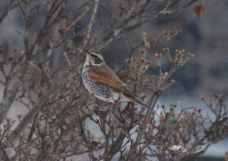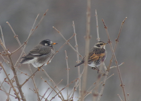 (最初の一枚は、ムクドリとツグミのツーショットです。)