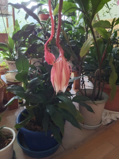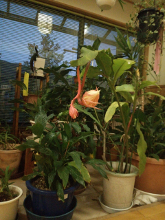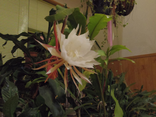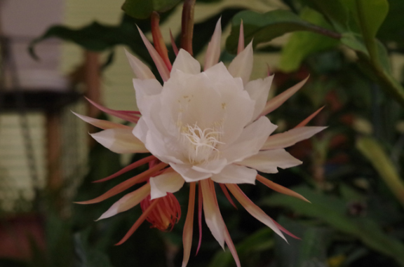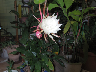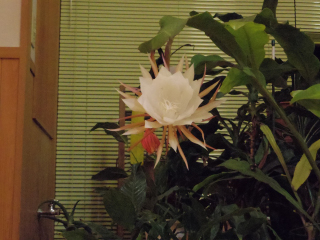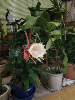 庭先の「シャラの木(ナツツバキ)」の下に置いてあった『月下美人』の蕾が大きくなりだしました。今夜は咲きそうです。