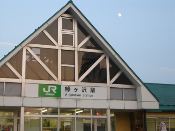 夕方、遅れて妻が鯵ヶ沢駅に到着。レンタカーが威力を発揮。