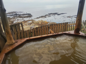 佐久平駅8:04発、大宮駅から「こまち」で秋田駅へ。「リゾートしらかみ」に乗り換えて「ウェスパ椿山」で下車し、不老不死温泉へ。サンセットの景色は最高です。露天風呂が茶色く濁っており、鉄分が酸化したものか。肌はスベスベ。